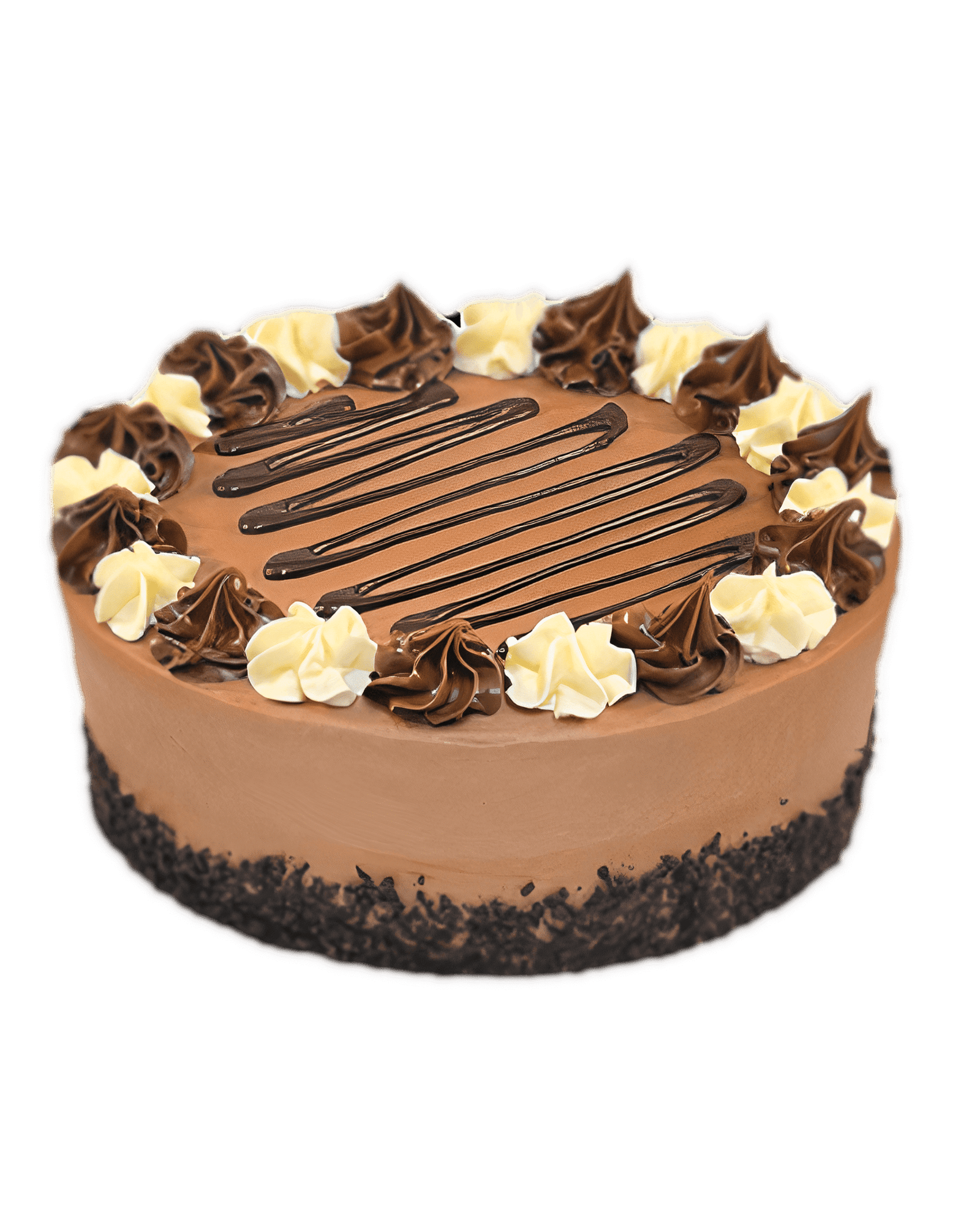 Three layers of rich chocolate sponge cake are filled with velvety mousse cream and adorned with chocolate crumbs. This decadent treat promises a symphony of chocolatey delights, offering a truly indulgent experience for the palate. Perfect for savoring a moment of sweet bliss